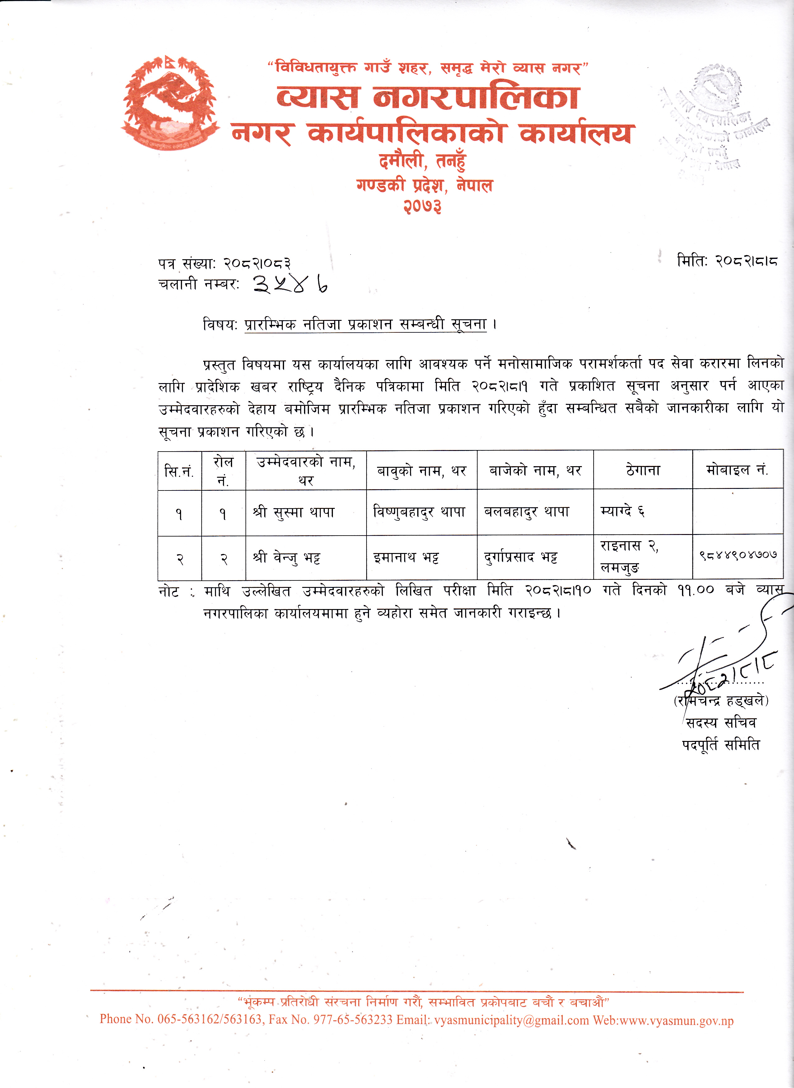 section.information@vyasmun.gov.np, ito.vyasmun@gmail.com , vyasmunicipality@gmail.com