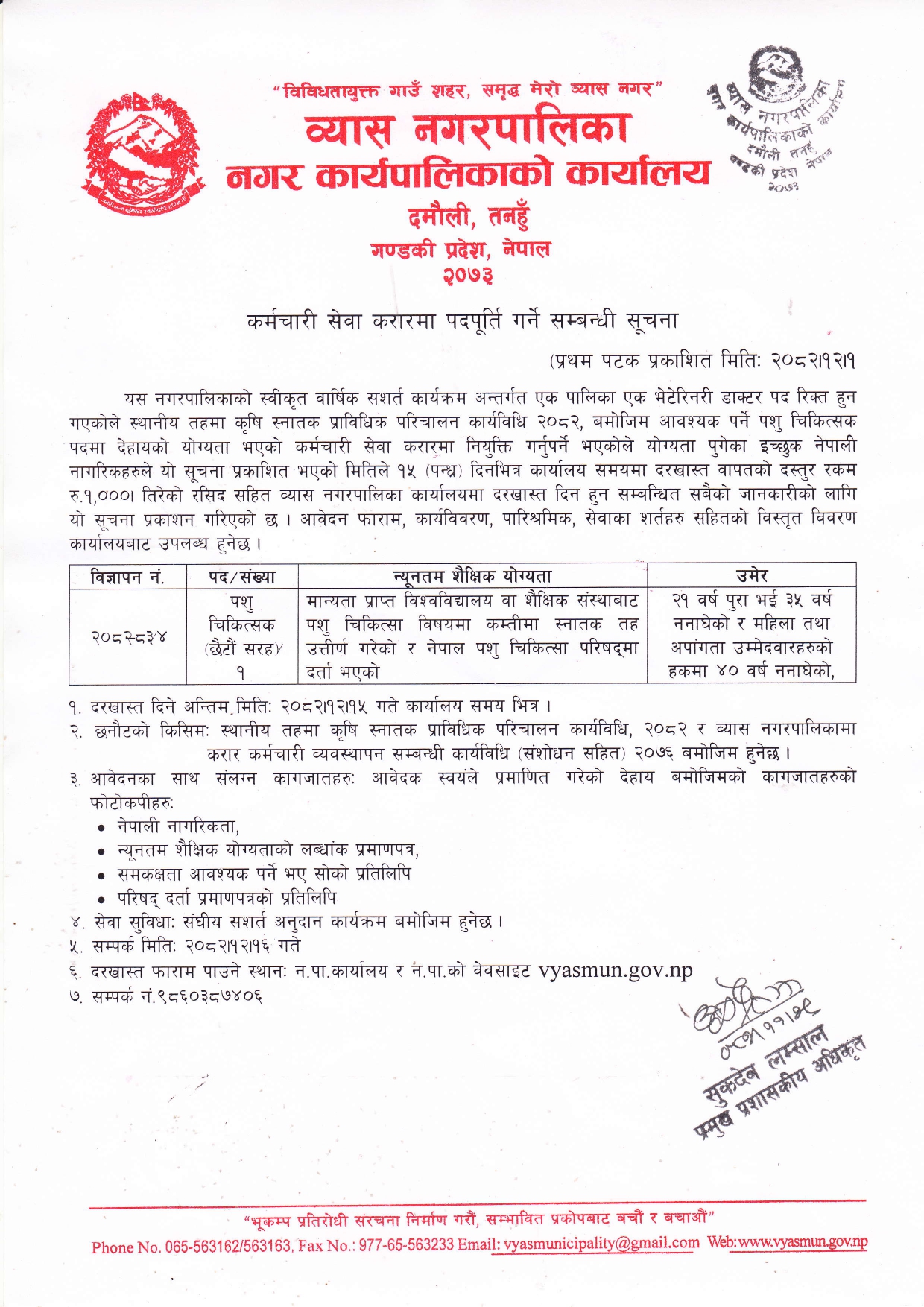 section.information@vyasmun.gov.np, ito.vyasmun@gmail.com , vyasmunicipality@gmail.com