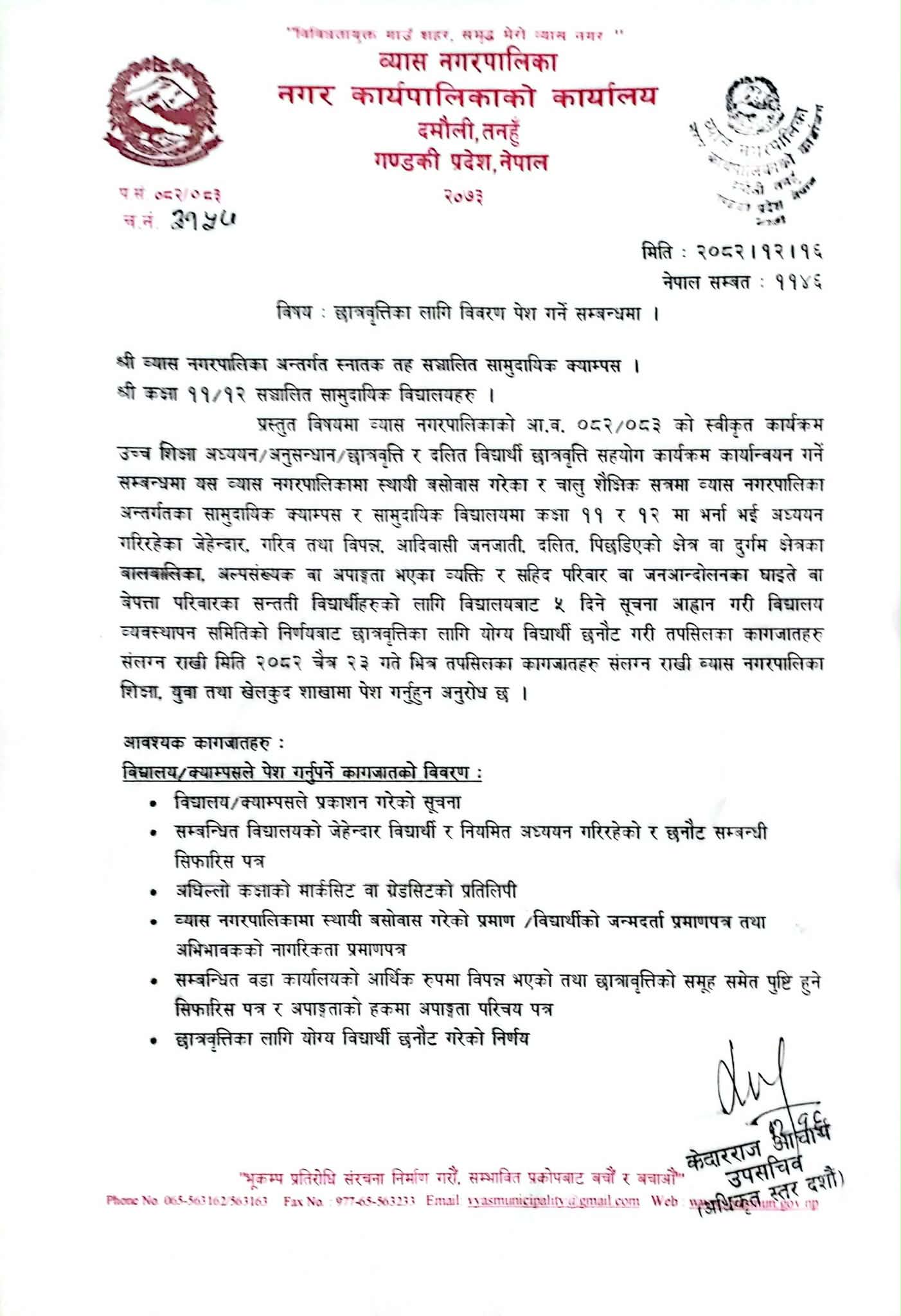 छात्रवृत्तिको लागि विवरण पेश गर्ने सम्बन्धमा।