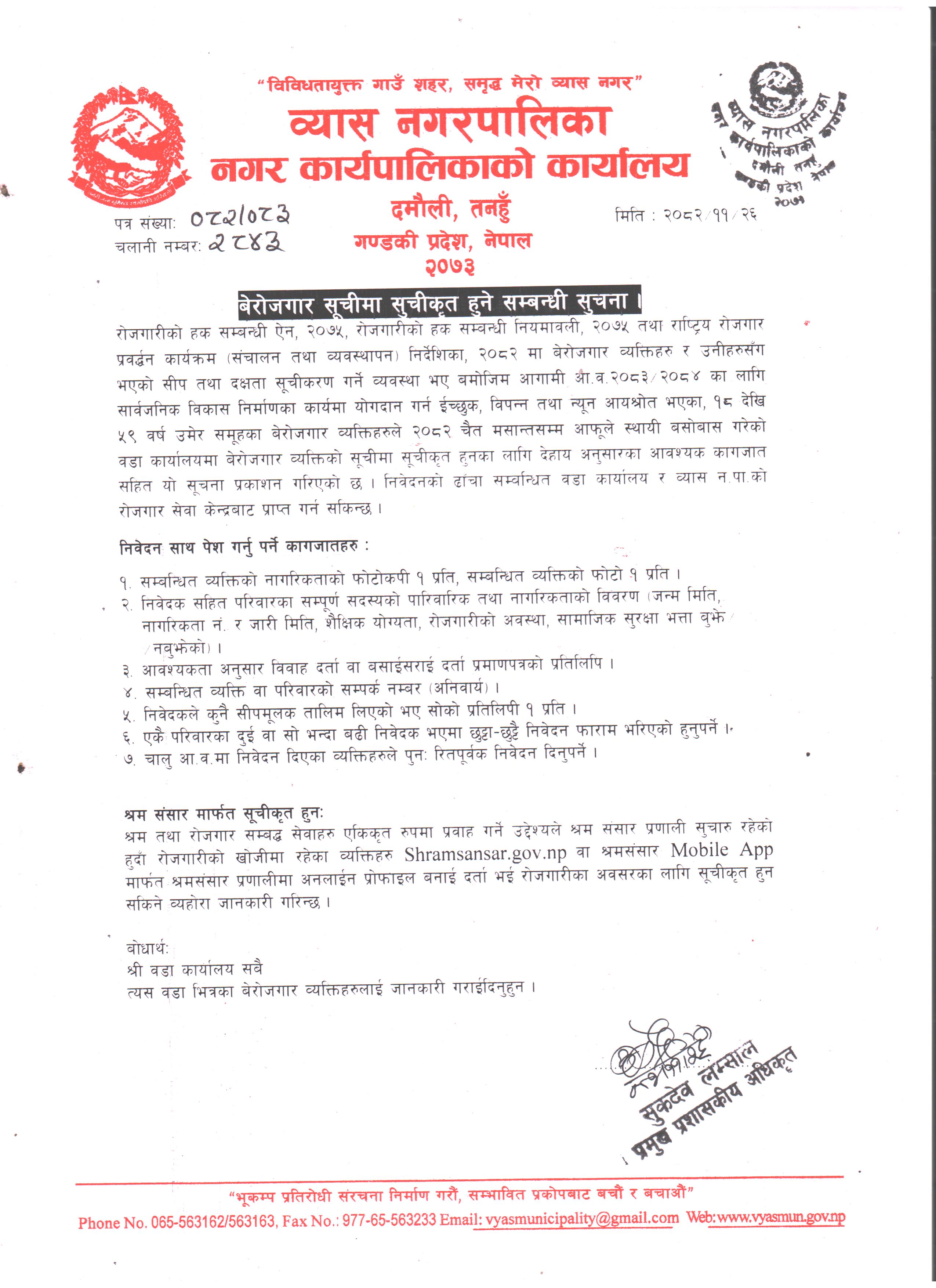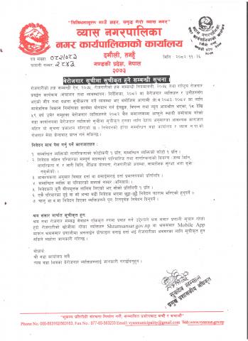 बेरोजगार सूचिमा सुचीकृत हुने सम्बन्धी सुचना ।