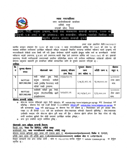 नदिजन्य पदार्थको विक्रीका लागि विद्यूतीय वोलपत्र आव्हान सम्बन्धी सुचना 5/22